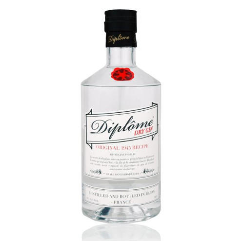 Het originele recept voor de Diplôme Dry Gin werd in 1945 ontwikkeld in Dijon en sindsdien wordt de gin er onveranderd en onafgebroken gestookt volgens de oude bain marie techniek. Hierbij rust de koperen distilleerketel in een waterbad dat langzaam wordt opgewarmd waardoor de botanicals rustig al hun aroma’s kunnen afgeven aan de bietenspirit.Dit resulteert in een fijne smaak die ongemeen complex is voor een dry gin. De neus evolueert van kersenbloesem naar kruidnagel en de smaak is droog met een zweem van pompelmoes en lavendel en nootachtige toetsen van zwarte chocolade. De afdronk is lang, spicy en aards. Geen wonder dat deze gin na de Tweede Wereldoorlog werd gebombardeerd tot officiële gin van de Amerikaanse strijdkrachten in Europa.